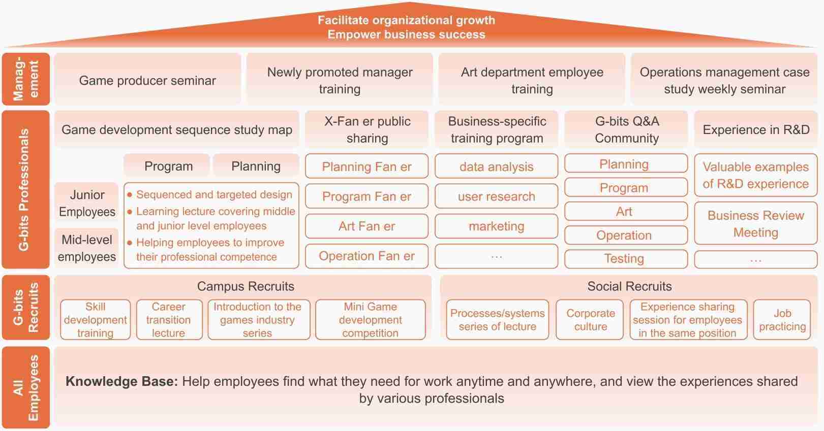 G-bits places significant emphasis on the development of each employee, continually refining its training mechanisms. In 2024, the Company revised internal management policies such as the Training Management Measures, standardizing the compensation criteria for non-managerial training courses and encouraging more employees to proactively share their expertise.