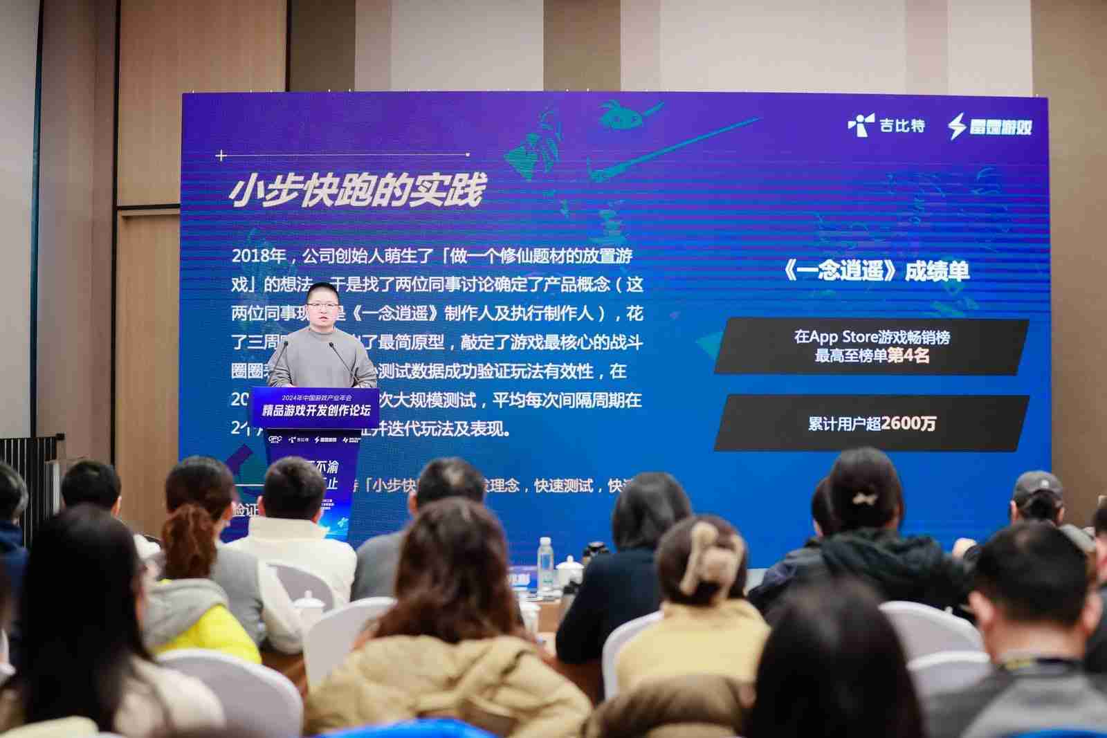 以《一念逍遥》为例,,,2018年公司创始人萌生想做修仙题材的放置游戏的想法,,,,于是找了两位同事讨论了一下产品的概念,,,这两位现在是项目的制作人,,花了三周的时间把原型做出来,,,并且确定最初的战斗原型,,,,以及整个养成的节奏。。。通过几次版本迭代验证后,,,也确定后面的内容应该怎么拓展,,最终在一年左右时间这个项目上线了。。。。当时我们内部有同事看到《⼀念逍遥》上线,,,认为品质还不够完美,,,但是整体营收还不错。。。。就在想那是不是以后我们都做这样的产品????但实际这是错误的认知,,我们内部不是这么看的。。。游戏在那个时间点上市,,,因为有些市场的考量和营销点的考虑,,,并不是希望所有项目都是这样。。。如果它有更好的契机,,,希望它可以做得更大、、更好,,希望在内核玩法确定之后,,外围投入可以越大越好,,所以后面的几个项目是往这个思路上做。。