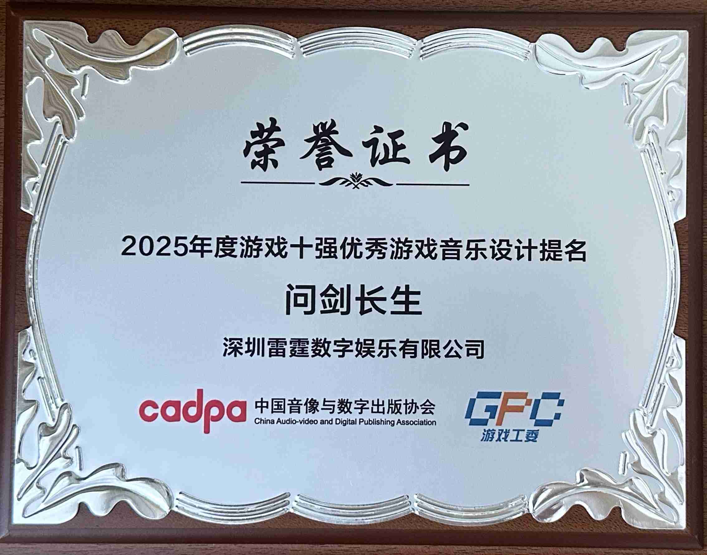 公司坚持走精品化道路,,打造与时代精神相契合、、、、与海内外大众诉求相契合、、、、与创作实践相契合的游戏产品,,,,倡导构建具有中华文化特色、、弘扬中华美学精神的产品理念,,切实提升游戏文化内涵的传播力影响力。。。。如此次荣获“2025游戏十强年度优秀游戏音乐设计”提名奖的公司自研产品《问剑长生》以音筑境,,以乐传情,,,其音乐融合东方传统韵味与现代审美,,构建独特听觉世界,,,运用古筝、、、、笛子、、、、箜篌等传统乐器与现代管弦乐,,,,塑造灵动古风仙侠氛围。。