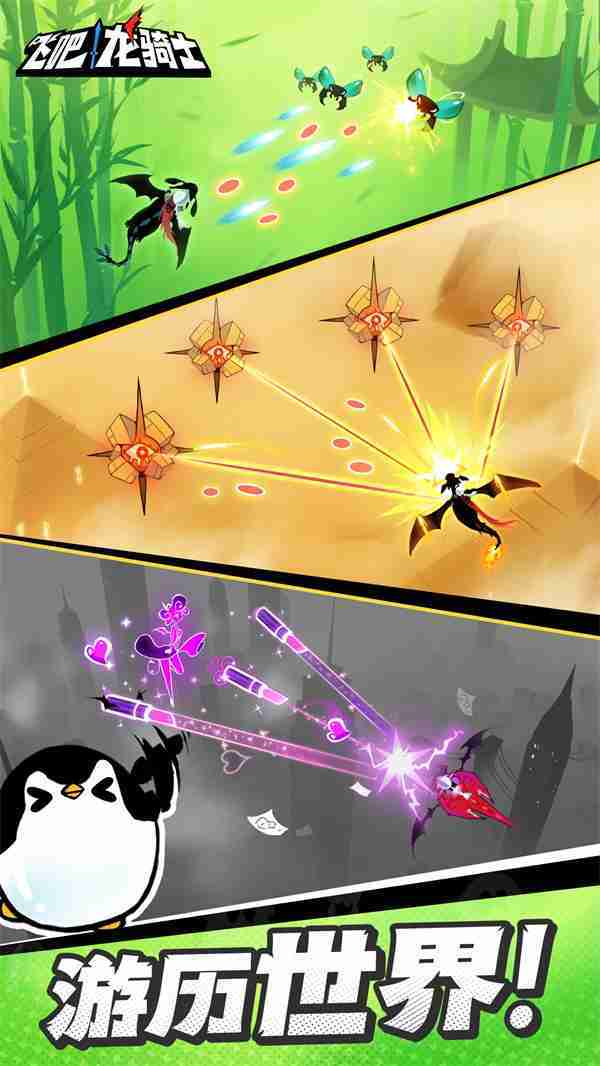 《飞吧龙骑士》是一款集合了飞行弹幕射击、、、、Roguelike要素和挂机养成的休闲手游,,极具创意的吞食子弹反击玩法,,,,突破传统飞行射击的刻板限制,,,带来了独特的爽快清屏体验。。。。